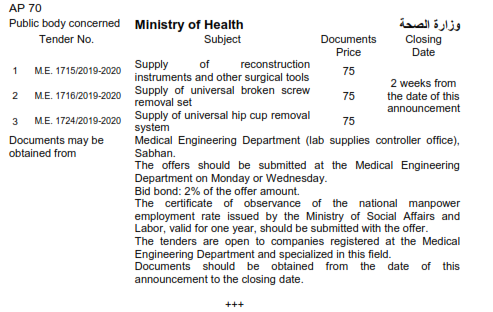 • All tender announcements (RFQ, RFP, RFI, ITB)