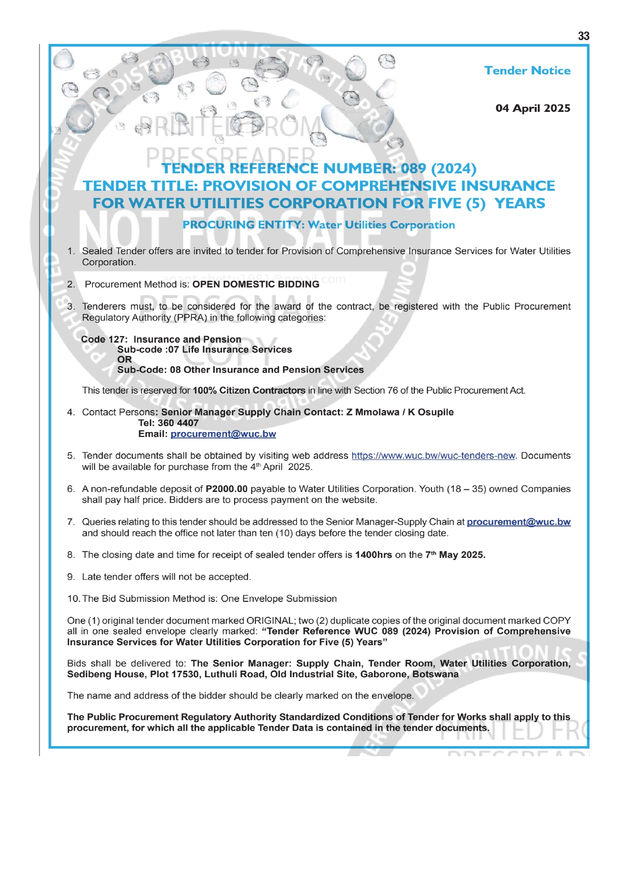 Provision of Comprehensive Insurance Services for Water Util... ***** Provision of Comprehensive Insurance Services for Water Util... *****