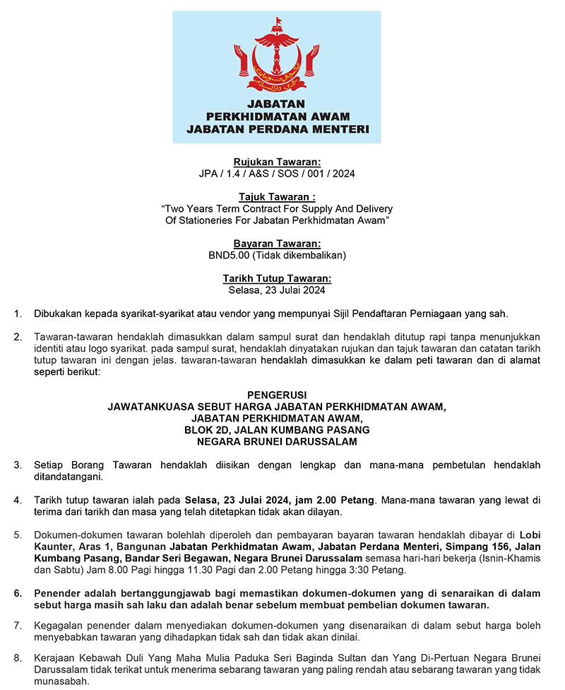 • All tender announcements (RFQ, RFP, RFI, ITB)