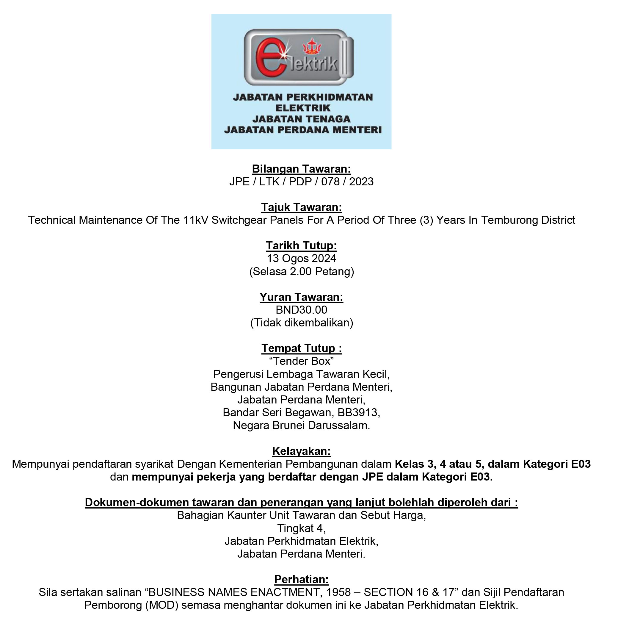 • All tender announcements (RFQ, RFP, RFI, ITB)