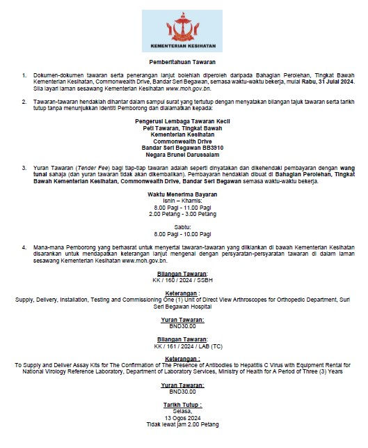 • All tender announcements (RFQ, RFP, RFI, ITB)