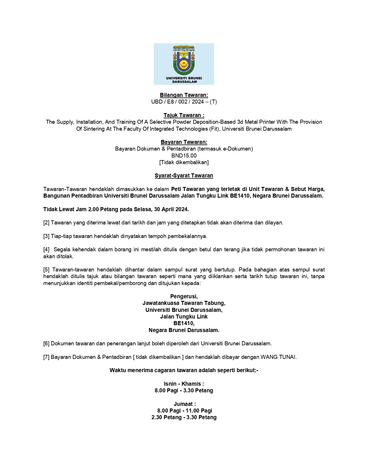 Supply, Installation, and Training of a Selective Powder Dep... ***** Supply, Installation, and Training of a Selective Powder Dep... *****