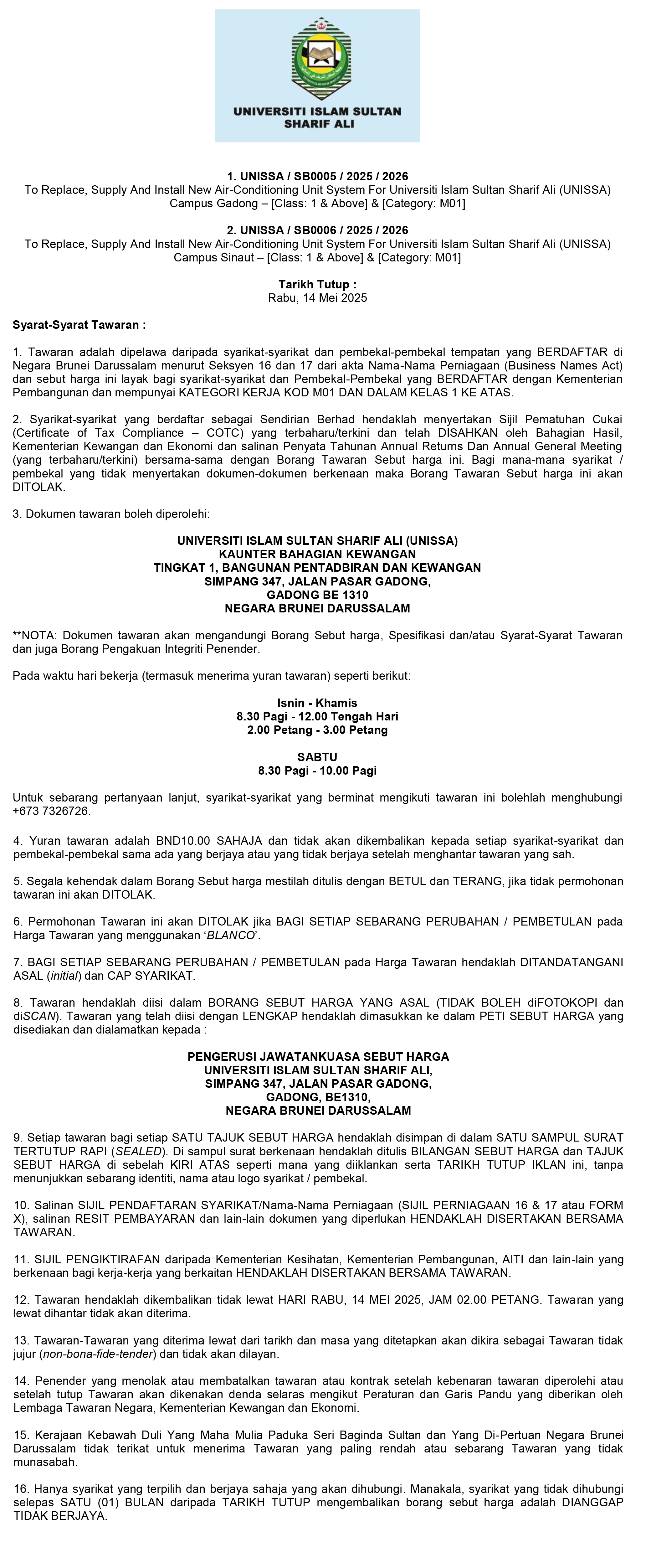 • All tender announcements, procurement notices, supply requests, RFQ, RFP, RFI, and ITB