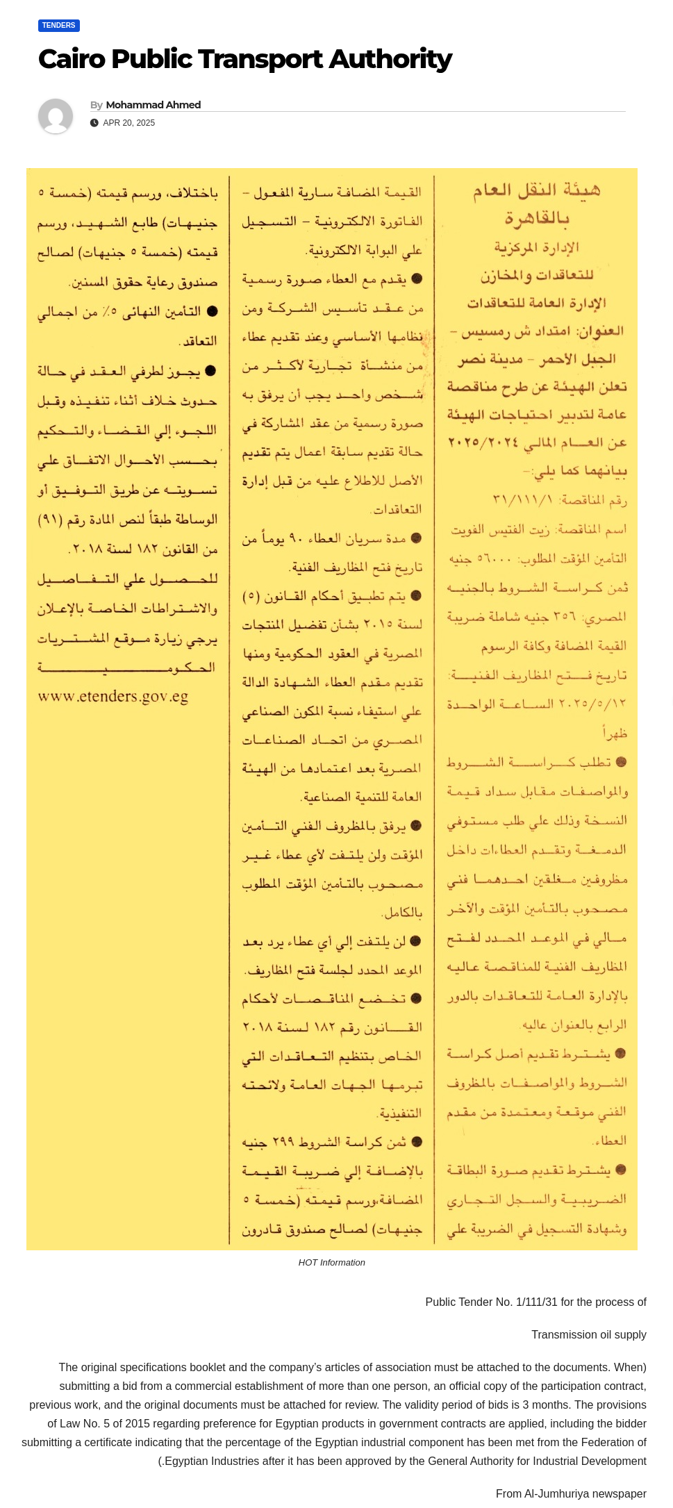 The tender is for the supply of transmission oil. Bids must... ***** The tender is for the supply of transmission oil. Bids must... *****