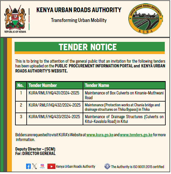 Maintenance of Box Culverts on Kinanie-Muthwani Road. Tender... ***** Maintenance of Box Culverts on Kinanie-Muthwani Road. Tender... *****