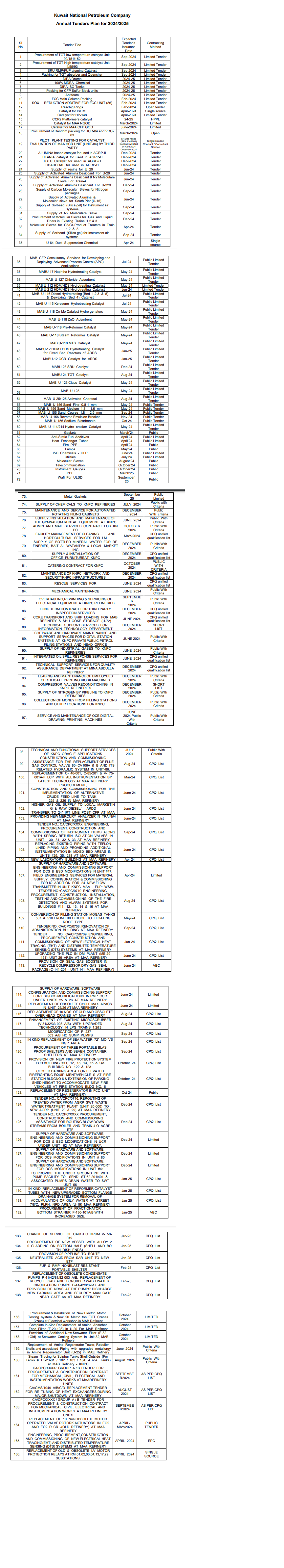 • All tender announcements (RFQ, RFP, RFI, ITB)