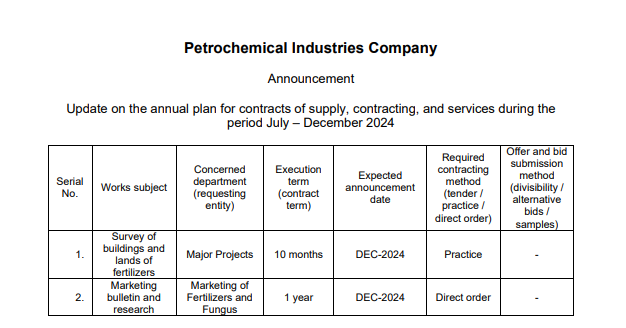• All tender announcements (RFQ, RFP, RFI, ITB)