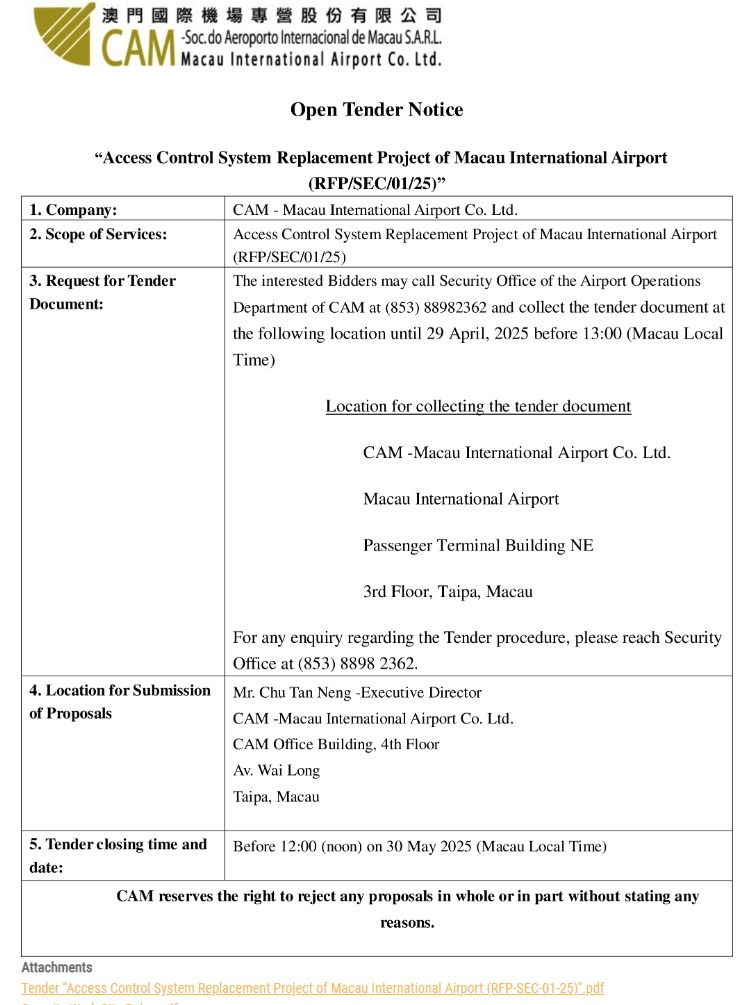 Access Control System Replacement Project of Macau Internati... ***** Access Control System Replacement Project of Macau Internati... *****
