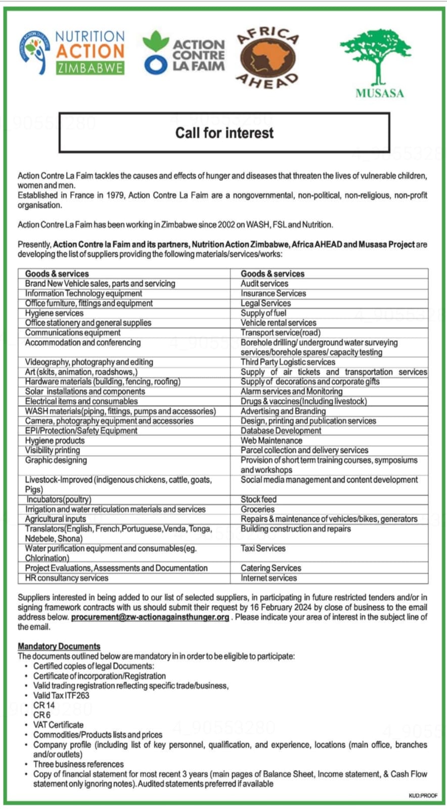 • All tender announcements (RFQ, RFP, RFI, ITB)